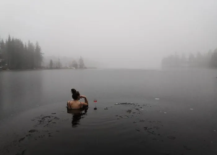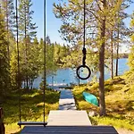 Välihissi on 3,8 km:n päässä tästä huvilasta. Oma ranta on vain muutaman metrin päässä. Tämä rantahotelli sijaitsee aivan lähellä Rukatunturia.